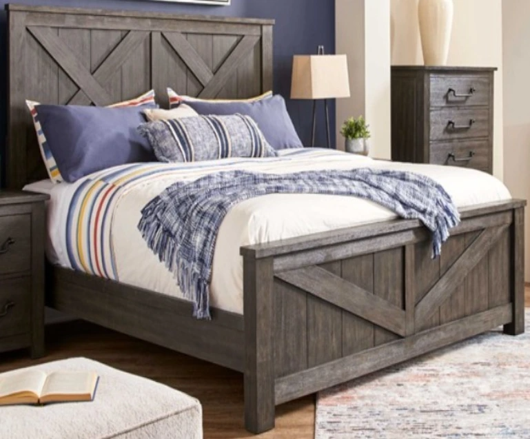 Denver makes a bold and beautiful addition to your bedroom. This rustic styled bedroom collection has a beautiful, weathered finish with hints of brown. This Denver king bed features durability and quality construction.Read More