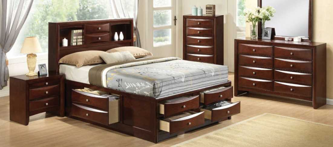 Stay organized with the attractive Emily storage bed. Its contemporary, contoured drawers give it a custom look. Plenty of storage is provided throughout all case pieces as well as on all sides of the bed. This set is sure to add functionality and beauty to any room.Read More