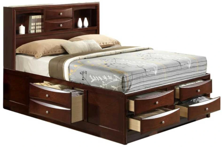 American Wholesale Furniture Emily Merlot Queen Bookcase Bed