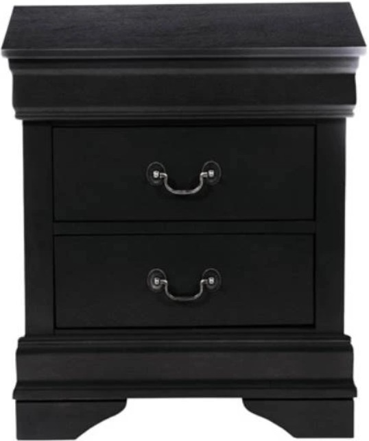 This nightstand from Louis Philippe provides additional storage to your space. Shown in ebony finish with curvaceous lines, traditional bracket feet and molding, and antique style bail handle hardware come together for a timeless appeal.Read More