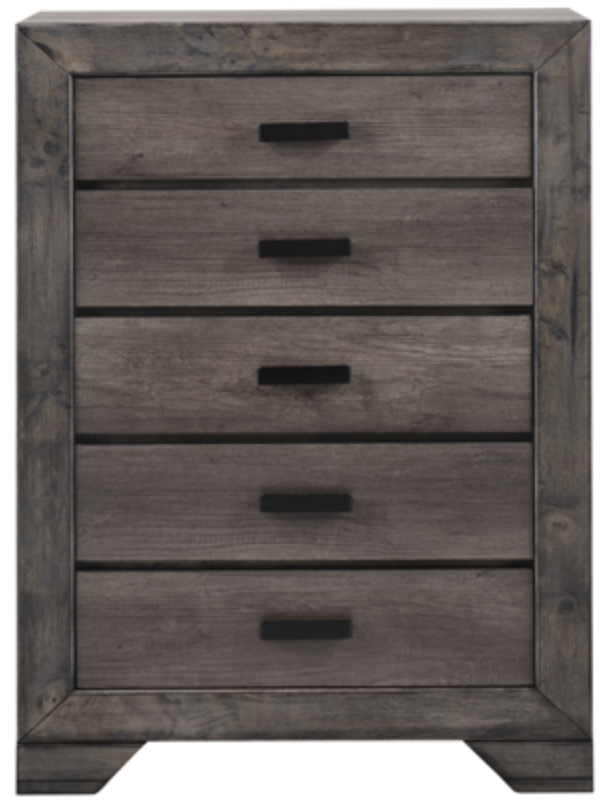 Dressed in a distressed gray oak finish, the handsome Nathan bedroom collection adds warmth and style to any room. Featuring clean lines and modern black finished hardware, this transitional set is sure to impress.Read More