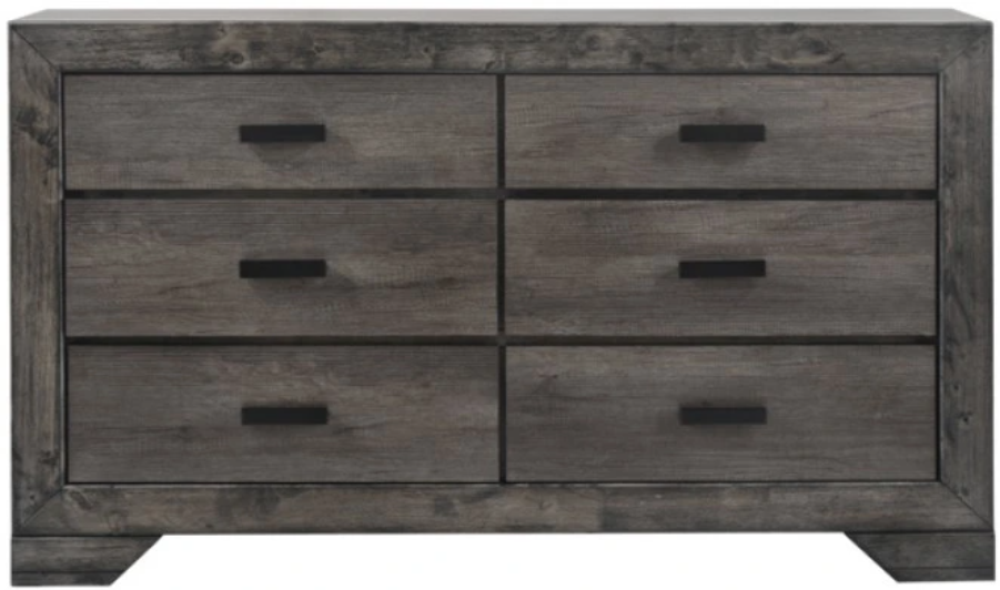 Dressed in a distressed gray oak finish, the handsome Nathan bedroom collection adds warmth and style to any room. Featuring clean lines and modern black finished hardware, this transitional set is sure to impress.Read More