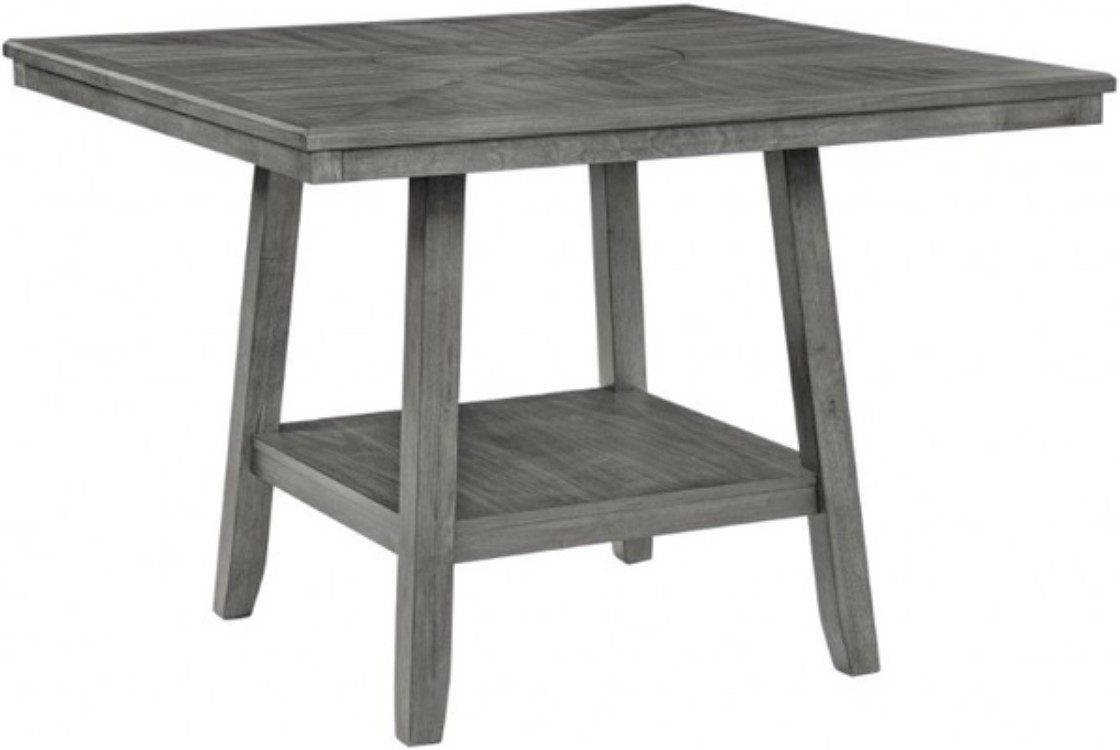This pub counter height table features a sleek gray finish with a distressed look, offering a modern yet rustic feel. The sturdy design provides both style and function, making it a great centerpiece for casual dining or gathering spaces.Read More