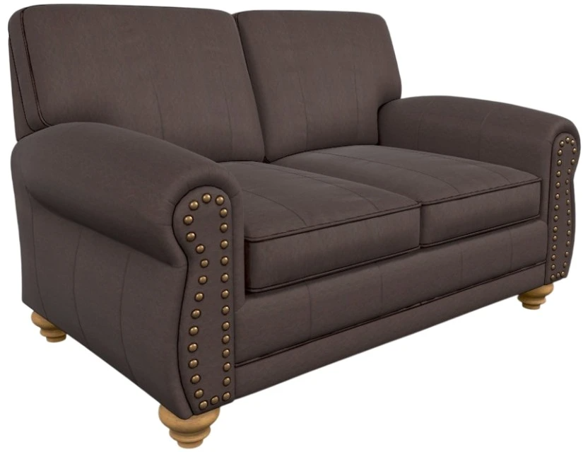 Feel right at home when you relax in this top-grain leather stationary loveseat. The smooth, blown, semi-attached square back is banded and corded with the added comfort of a baffled bag in the back. The smooth, rolled arms flow into the stepped-in back where they converge with the contoured and padded lower arms.Read More