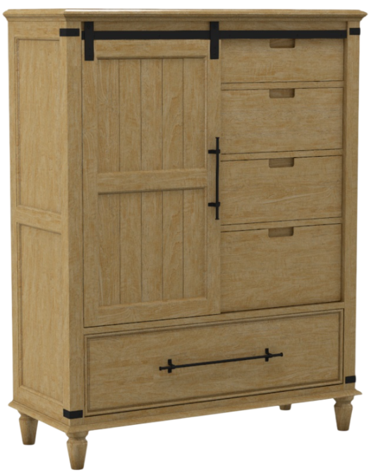 This sliding door chest provides practical storage with multiple drawers and adjustable shelving behind a smooth-gliding door. Built for everyday use, it offers sturdy construction and customizable finish options to fit your space. Its functional layout helps keep clothing and essentials neatly organized.Read More