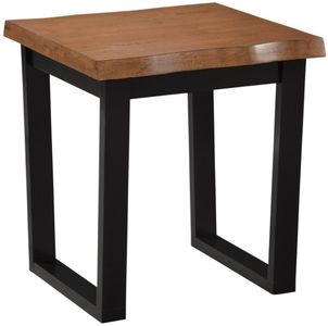 This live edge end table from the Home Accents collection highlights natural character with a bourbon oak top and bold black base. Its organic edge detail and sturdy design create a striking accent that blends rustic charm with modern style.Read More