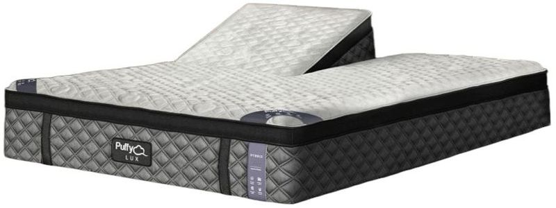 The Puffy Lux Hybrid Mattress featuring 8 layers, a 12" profile and medium plush feel. Bestselling luxury hybrid model with temperature-regulated contouring layers and individually pocketed coils for optimal back support.Read More